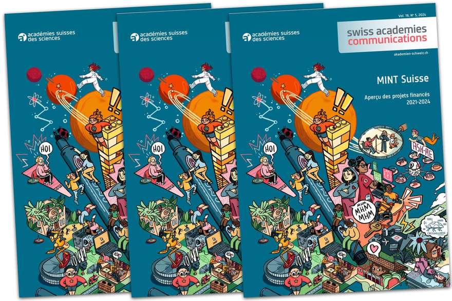 | | Dans le cadre du programme d'encouragement MINT Suisse, les Académies suisses des sciences ont soutenu et accompagné entre 2021 et 2024 de nombreux projets dans les domaines des mathématiques, de l'informatique, des sciences naturelles et de la technique (MINT). Les enfants et les jeunes étaient au centre de ces projets. Plus | |